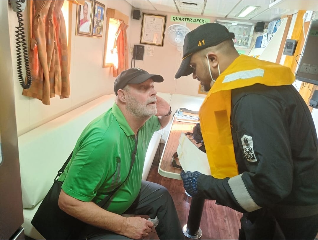 Mumbai: Responding to an emergency, the Indian Coast Guard’s (ICG) Maritime Rescue Coordination Centre, Mumbai (MRCCM), on Thursday, evacuated a 65-year-old American from a Kenya-bound cruise ship as he required urgent medical attention.