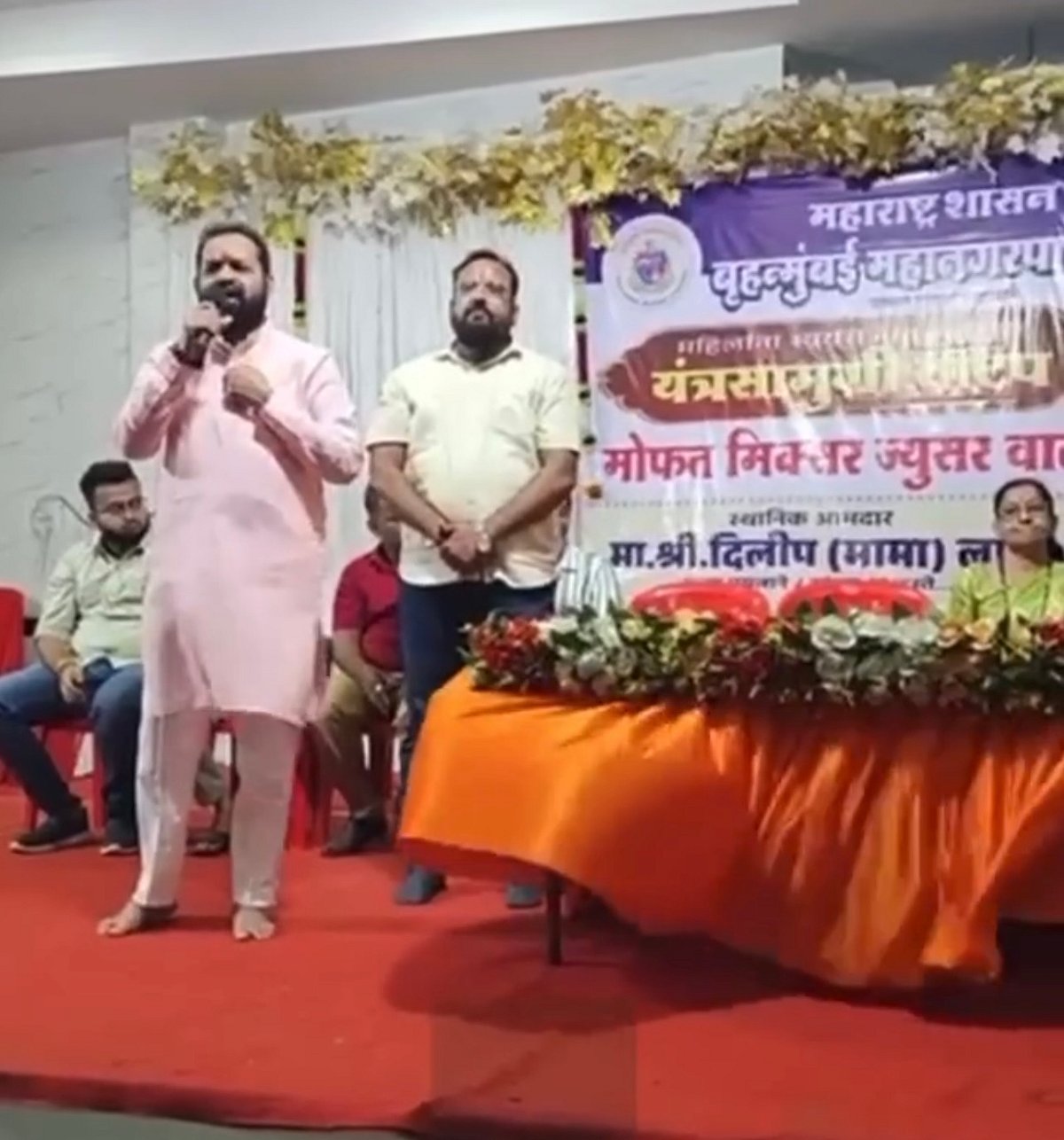 Videos of the event, shared by Lande on his Facebook account, showed banners claiming the appliances were provided under Maharashtra government and BMC welfare schemes. However, no state or civic officials were seen on the stage only Lande and Shiv Sena (Shinde faction) workers.