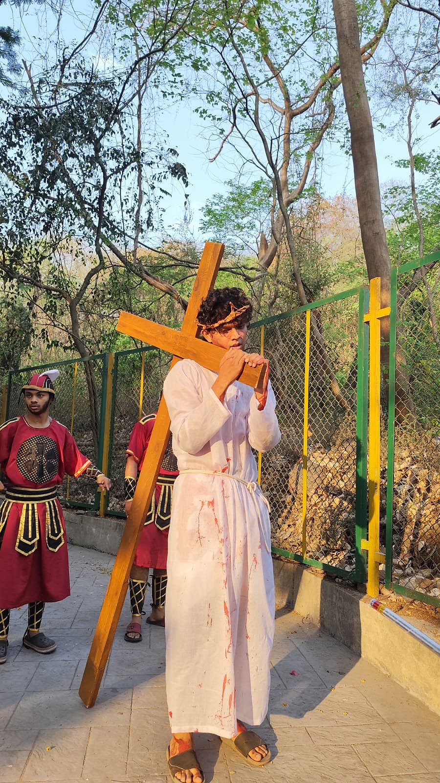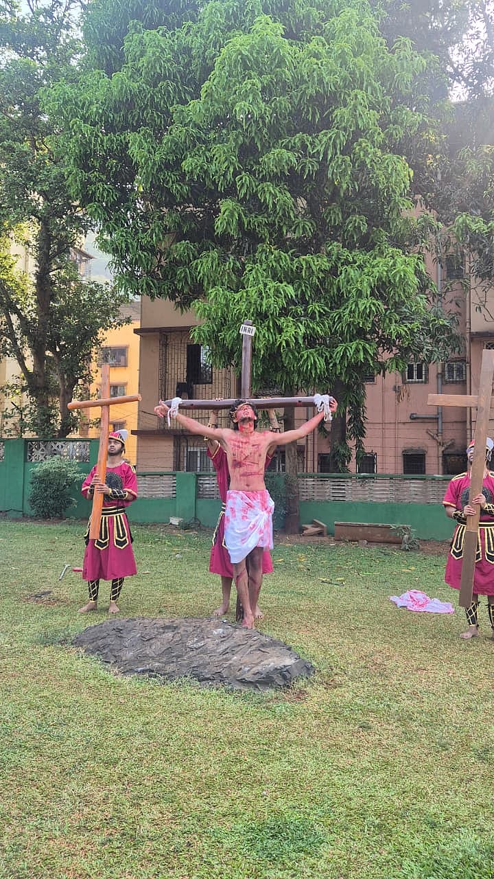At St Joseph Church in CBD Belapur, parishioners organised a “Live Walking Stations of the Cross” in the surrounding area from 6:30 am to 9:00 am. The event was led by parish priest Father Gerard Dsouza, with active involvement from youth animators and members of the parish. Ryan Banis, a cyber security professional from Vasai, portrayed the role of Jesus during the enactment.