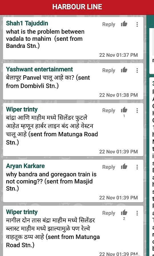 While some commuters unaware of the incident questioned, "What is the problem between Wadala to Mahim?" While another commuter from King Circle informed, "No Trains Between Wadala and Bandra" A passenger named Shriram also informed saying that permission has been given to passengers to travel via Dadar towards Goregoan or Andheri.