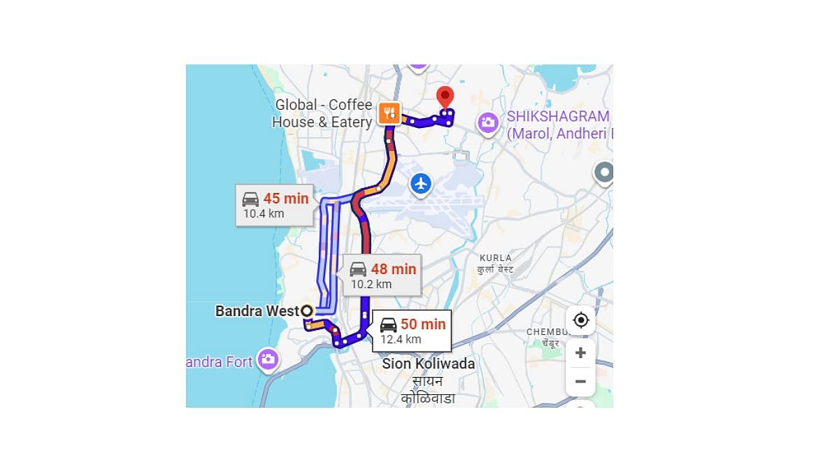 According to the latest Google Maps data, multiple red traffic indicators are visible along the Western Express Highway, signalling severe congestion. The travel time between Bandra and Andheri has increased to nearly 50 minutes, which usually takes about 35 minutes.