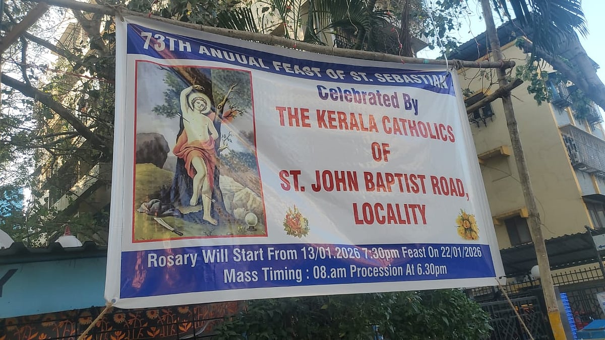 The annual feast brings together the community living in the area for the daily rosary novena held before the feast Mass at 8:00 am on Wednesday, followed by a community lunch and a large procession in the evening with the statue of St. Sebastian. Media consultant David Vaz said that the procession, accompanied by a band, winds its way to the Mount Mary Steps, then proceeds to St Francis of Assisi Church, and finally returns to the chapel. This has been organized by the Kerala Catholics of this area since their forefathers' time, said Vaz.