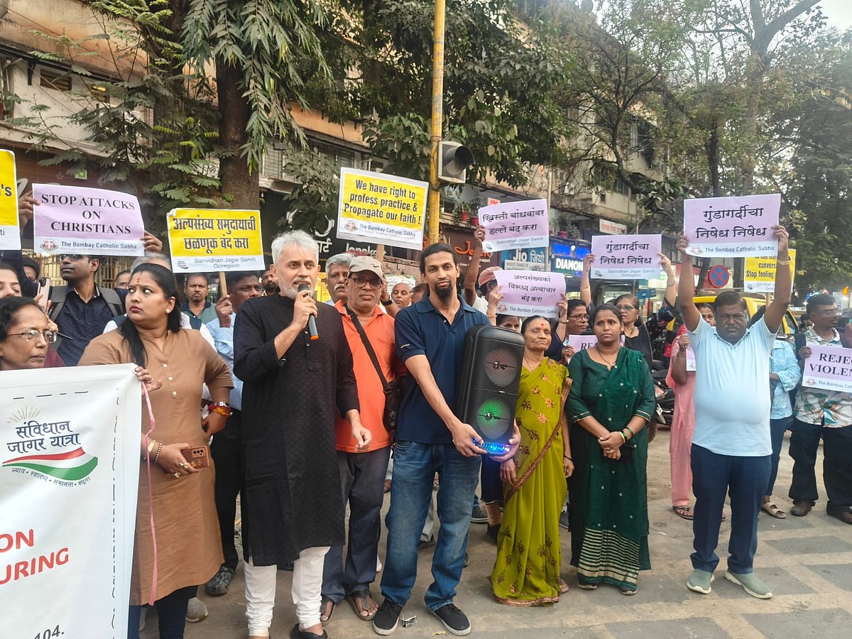 The protest was organised by the Samvidhan Jaagar Yatra Samiti (SJYS) and The Bombay Catholic Sabha (BCS), one of the city’s oldest Catholic lay groups. The gathering at S V Road, Goregaon, drew community members, civil society representatives, and concerned citizens who stood silently with placards denouncing hate and religious violence. The placards referred to Constitutional values, religious freedom, and the need for state accountability. The protestors condemned what they described as a 'systematic assault on constitutional freedoms.'