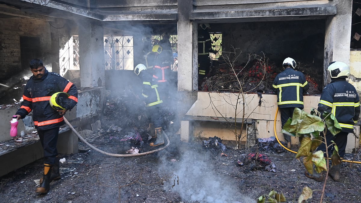 A fire broke out on the ground-floor of a two-storey derelict BMC school building near the Mint Colony Monorail Station in Parel on Monday morning. The flames also led to the explosion of gas and oxygen cylinders. No injuries were reported as the institute has been shut for the last three years. However, the Covid-related materials stored in the building were reduced to ashes.