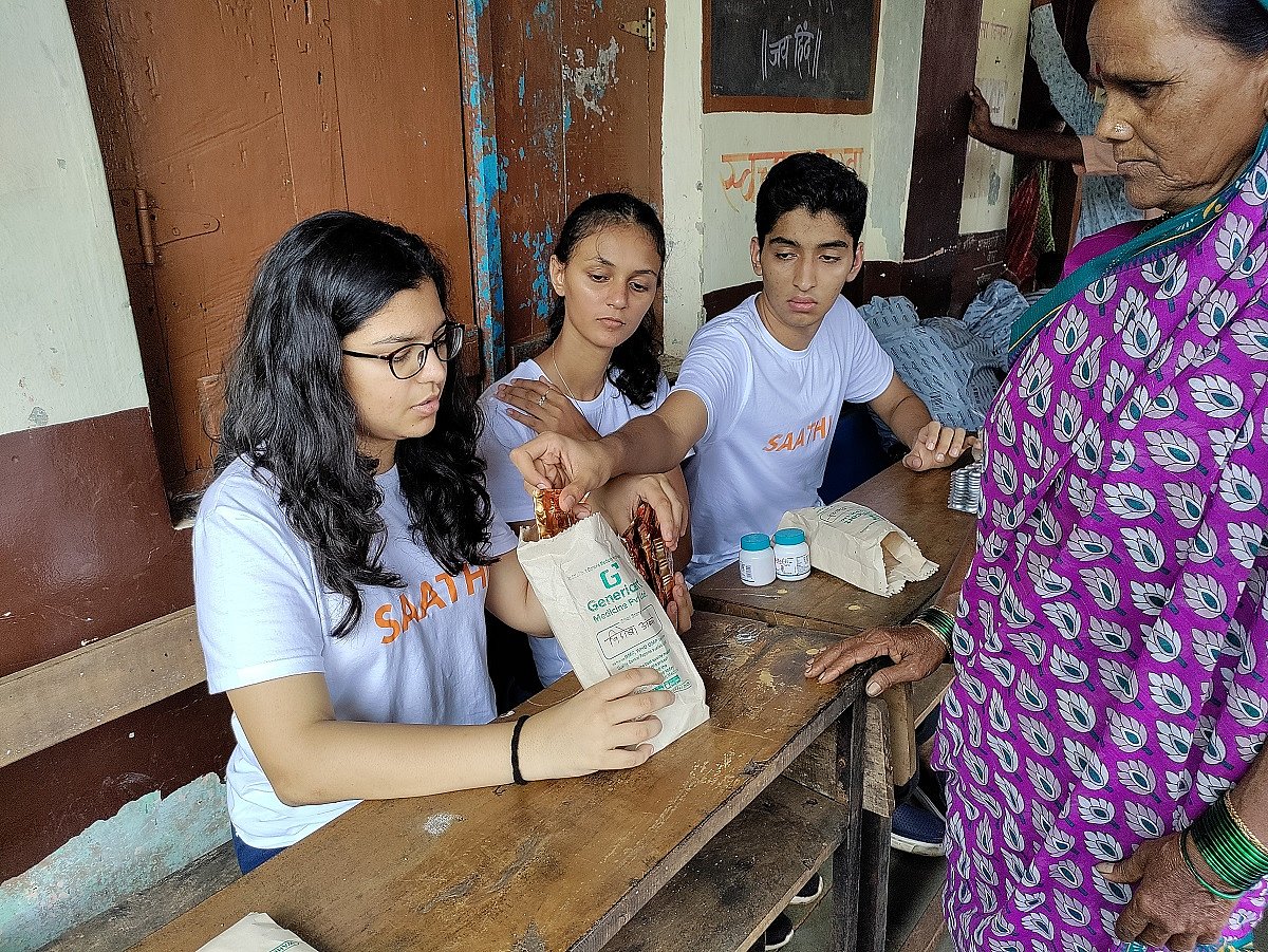 Kond village has a large population of senior citizens with health issues. In the past, taking an ailing elderly citizen to the ambulance parked about 500m away was a challenge. Krishaangh Kumar from The Cathedral and John Connon School stated, “Our team recognised the need for a wheelchair and a walker along with daily medical supplies and provided the same.”