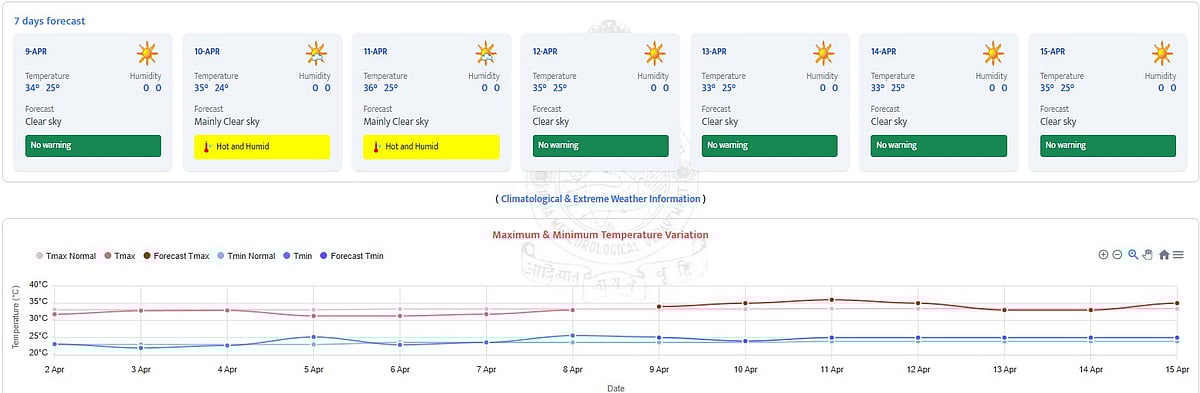 On April 10, the maximum and minimum temperatures are expected to range between 35°C and 24°C, respectively, while conditions will intensify on April 11, with the maximum temperature expected to reach 36°C.