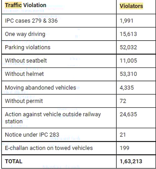 In an extensive drive against the traffic violators, the police fine 11,005 motorists for driving without a seatbelt, while 53,310 bikers were fined for riding without a helmet. Pandey had warned the citizens during his Facebook Live session that if they engage in any illegal activities, they should be ready to face the consequences of their actions as well, hinting at the stern action initiated against the violators.