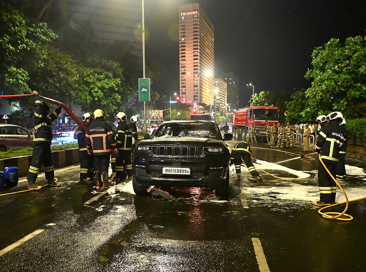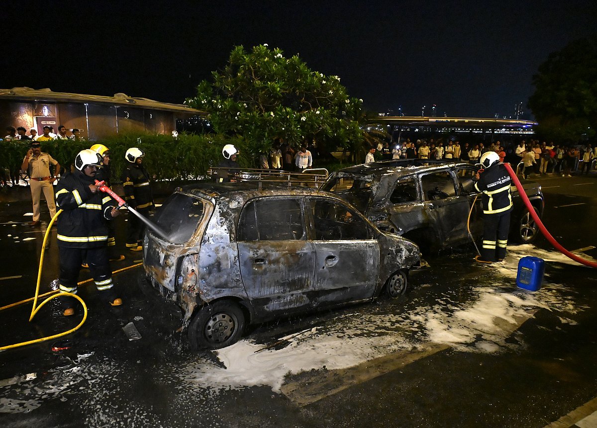 According to MFB officials, a fire broke out after a Santro cab collided with another car from behind at around 7:45 PM, causing panic in the area. Two fire engines were deployed, and the blaze was brought under control within minutes. Both drivers were able to exit their vehicles safely. The cab was completely charred, while the other car was partially burnt, a fire official said.