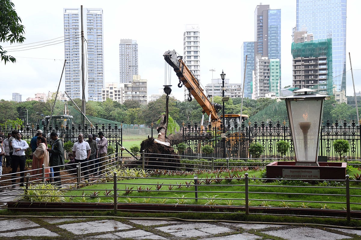 The memorial's grills, flooring, water pipe and electricity cables have been broken owing to the impact of tree fall. The incident has unsettled the Shiv Sena workers, who had an emotional connection with the tree.