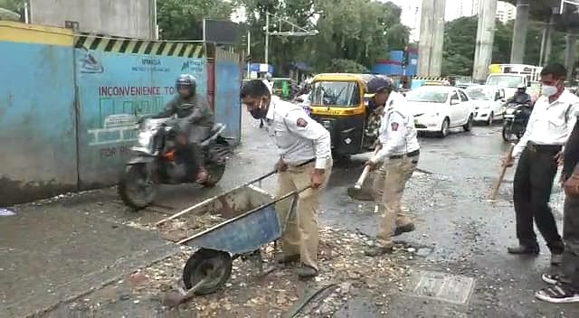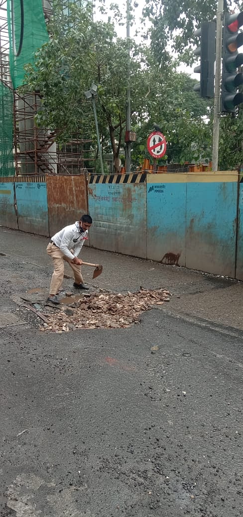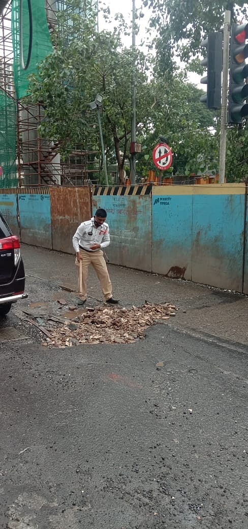 The constables alerted the control room and informed the BMC T-ward as well, but to no avail. There was ongoing work of a bridge nearby with the materials present on the spot, but the workers were not there amid heavy rain. Traffic constables Wagh and Chavan then decided to fill the potholes themselves and took the debris of the bridge work, put it in the carrier and filled the potholes.