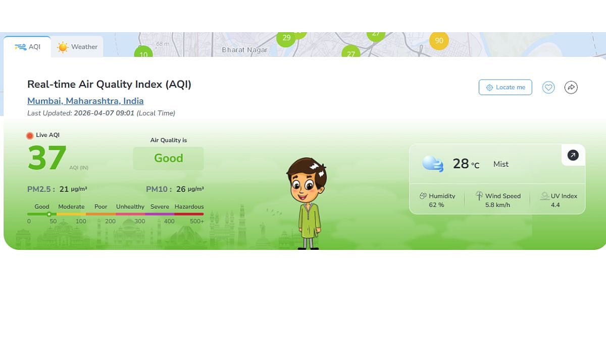 Air quality across Mumbai dipped, with the overall Air Quality Index (AQI) recorded at 37 at 9 am, placing it in the 'good' category. This comes days after a trend of cleaner air was witnessed in recent days, with AQI levels dropping as low as 21.