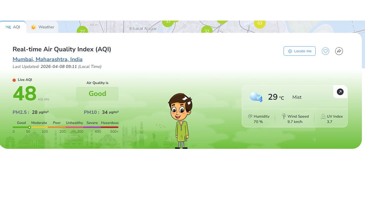 Mumbai: The city woke up to clear skies as warm weather prevailed on Wednesday, while the morning temperature settled at around 31°C. The overall Air Quality Index (AQI) was recorded at 48 in the early hours, placing it in the 'good' category.