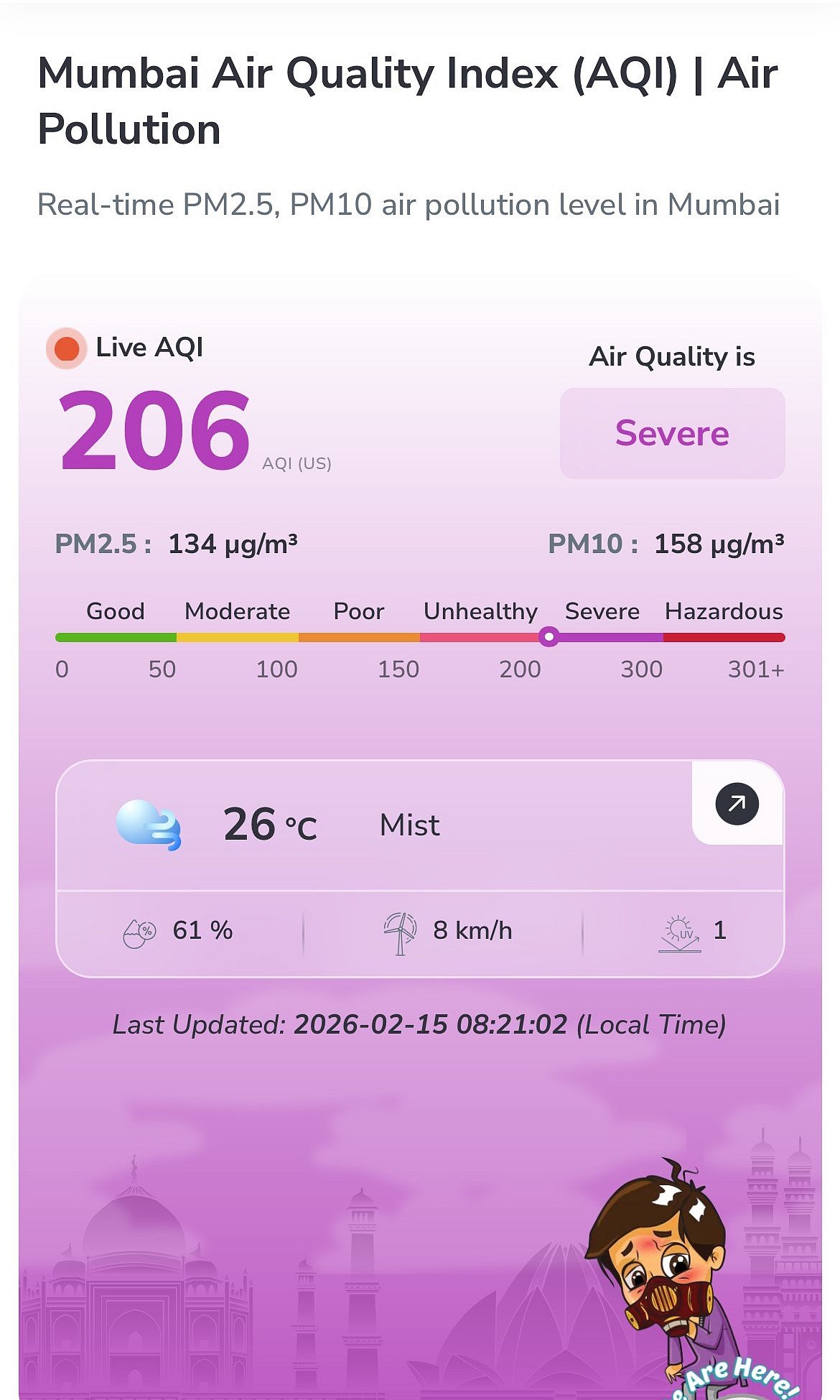 Mumbai woke up to a bright and sunny Sunday morning with temperatures hovering around 26 degrees Celsius, but the comfort in the air was deceptive. Pollution levels across the city painted a worrying picture, with the overall Air Quality Index recorded at 206, placing it in the severe category.