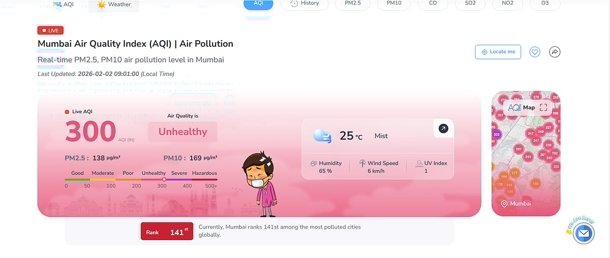 Mumbai: Mumbai woke up to a cloudy and relatively cool morning on Monday, February 2, with several parts of the city enveloped in a thick smog layer that reduced visibility and posed challenges for early-morning commuters. The persistent haze has once again brought the city’s worsening air quality into sharp focus, as pollution levels continue to remain alarmingly high.