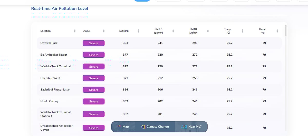 Regional data highlights the extent of the crisis, with over 85% of the city reporting AQI levels above 300. Swastik Park recorded one of the highest readings at 393, followed closely by B S Ambedkar Nagar at 377. Other pollution hotspots include Wadala Truck Terminal (377), Chembur West (371) and Savribai Phule Nagar (366), all categorised as ‘severe’.