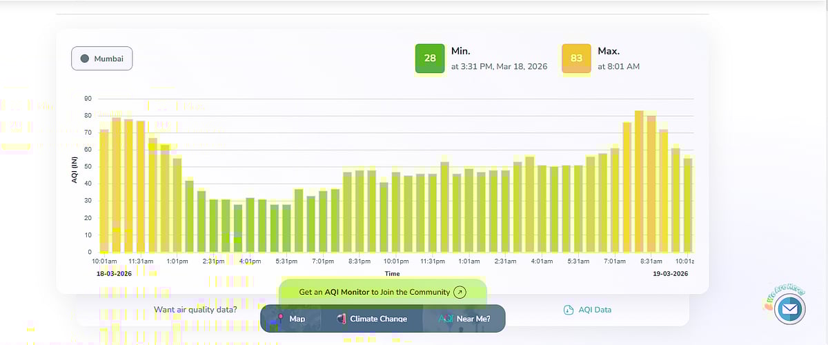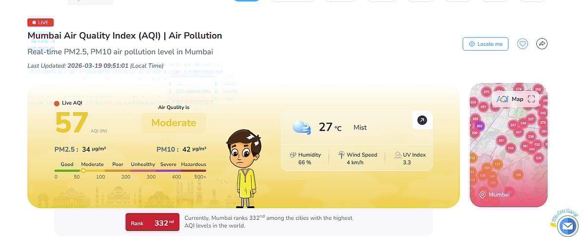 On the air quality front, Mumbai recorded an overall Air Quality Index (AQI) of 57, placing it in the ‘moderate’ category, as per AQI.in data. Over the past 24 hours, air quality levels have largely fluctuated between the ‘good’ and ‘moderate’ categories.