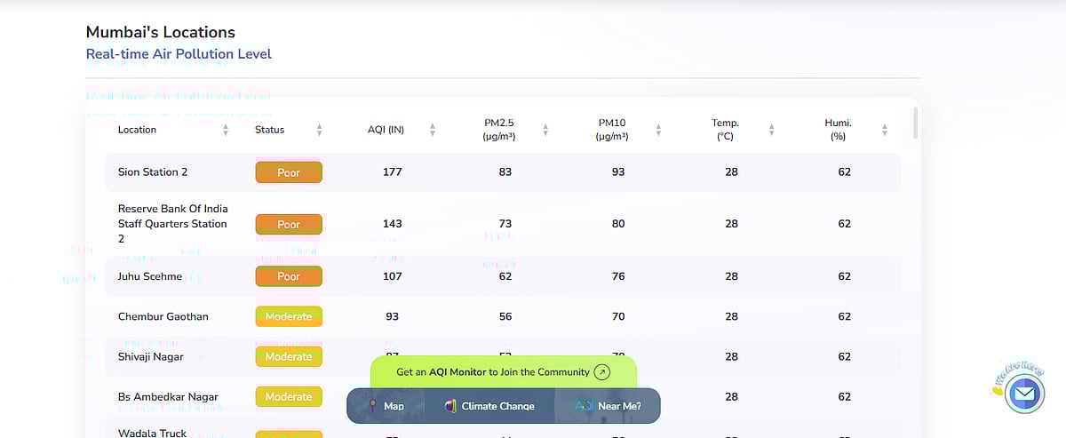 However, certain pockets continue to raise concern. Sion Station 2 recorded the highest AQI of 177. Additionally, areas including Reserve Bank of India Staff Quarters Station 2 (143 - Poor), Juhu Scheme (107 - Poor), Chembur Gaothan (93 - Moderate) and Shivaji Nagar (87 - Moderate), highlighting persistent localised pollution challenges.