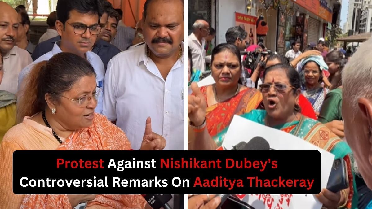 Mumbai: Hundreds of women took to the streets near Sena Bhavan on Saturday, protesting against controversial remarks made by BJP MP Nishikant Dubey about Aaditya Thackeray in the Lok Sabha.