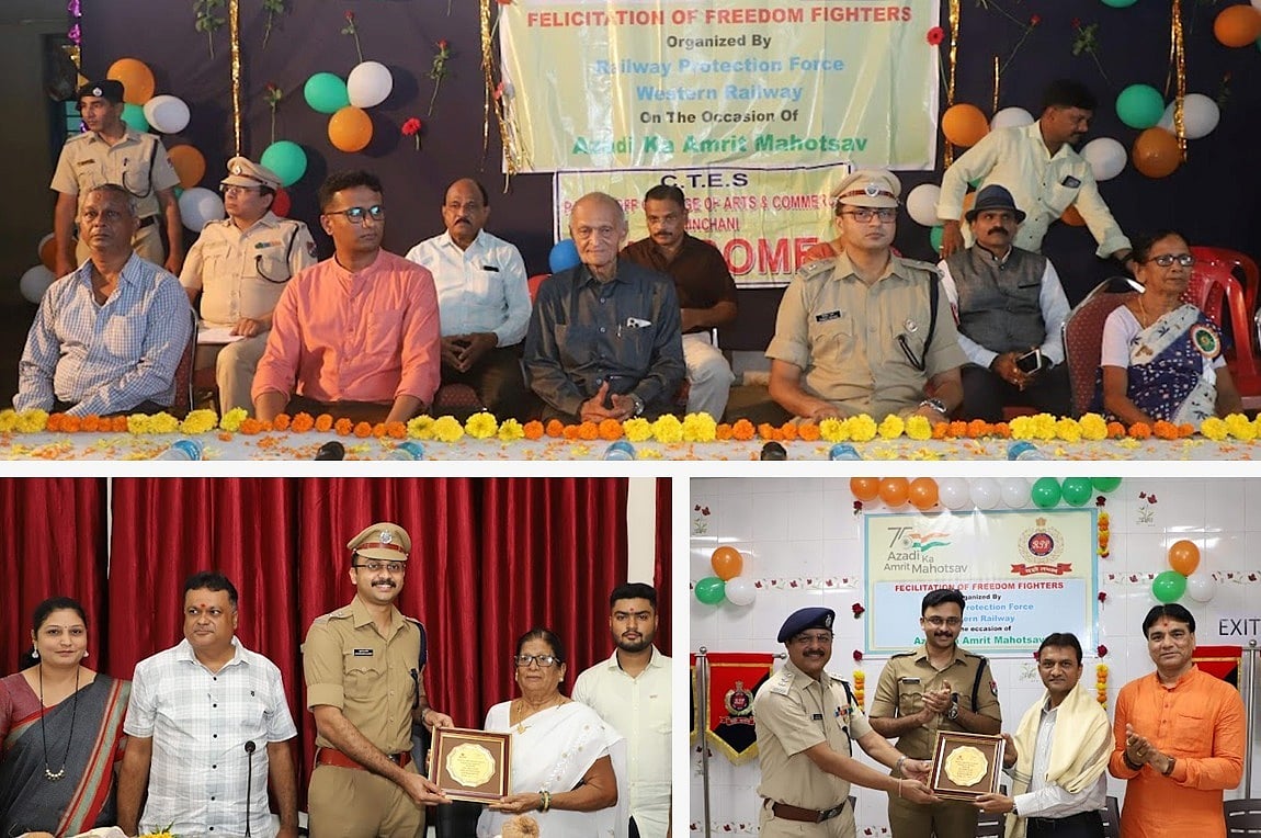 According to Sumit Thakur - Chief Public Relations Officer of Western Rly, the RPF Mumbai Division paid tribute to six freedom fighters by felicitating their family members. The function was held at Palghar on 2nd July 2022, at Valsad on 4th July 2022 & at Nandurbar on 6th July 2022 by RPF officials.