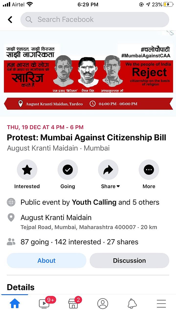 The ‘Mumbai against Citizenship Bill’ protest will take place tomorrow at August Kranti maidan from 4 p.m.