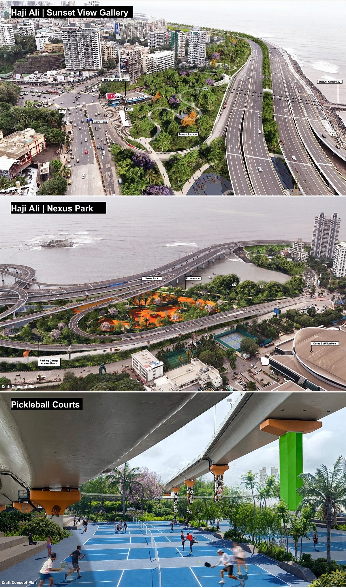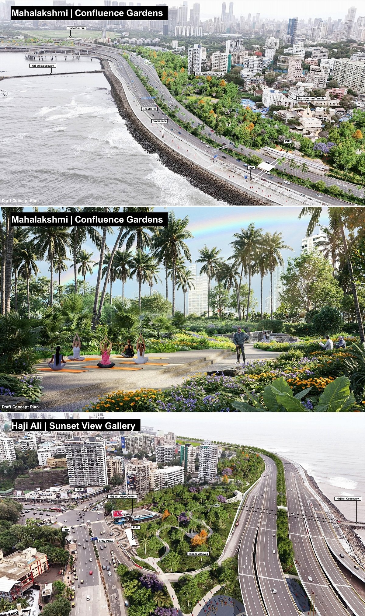 It will have a maidan at Breach Candy, Confluence Gardens at Mahalaxmi, Sunset View Gallery at Haji Ali. While Worli will have three attractions- Woodlands Art Gallery, Ferries Wheel and Festival Plaza.