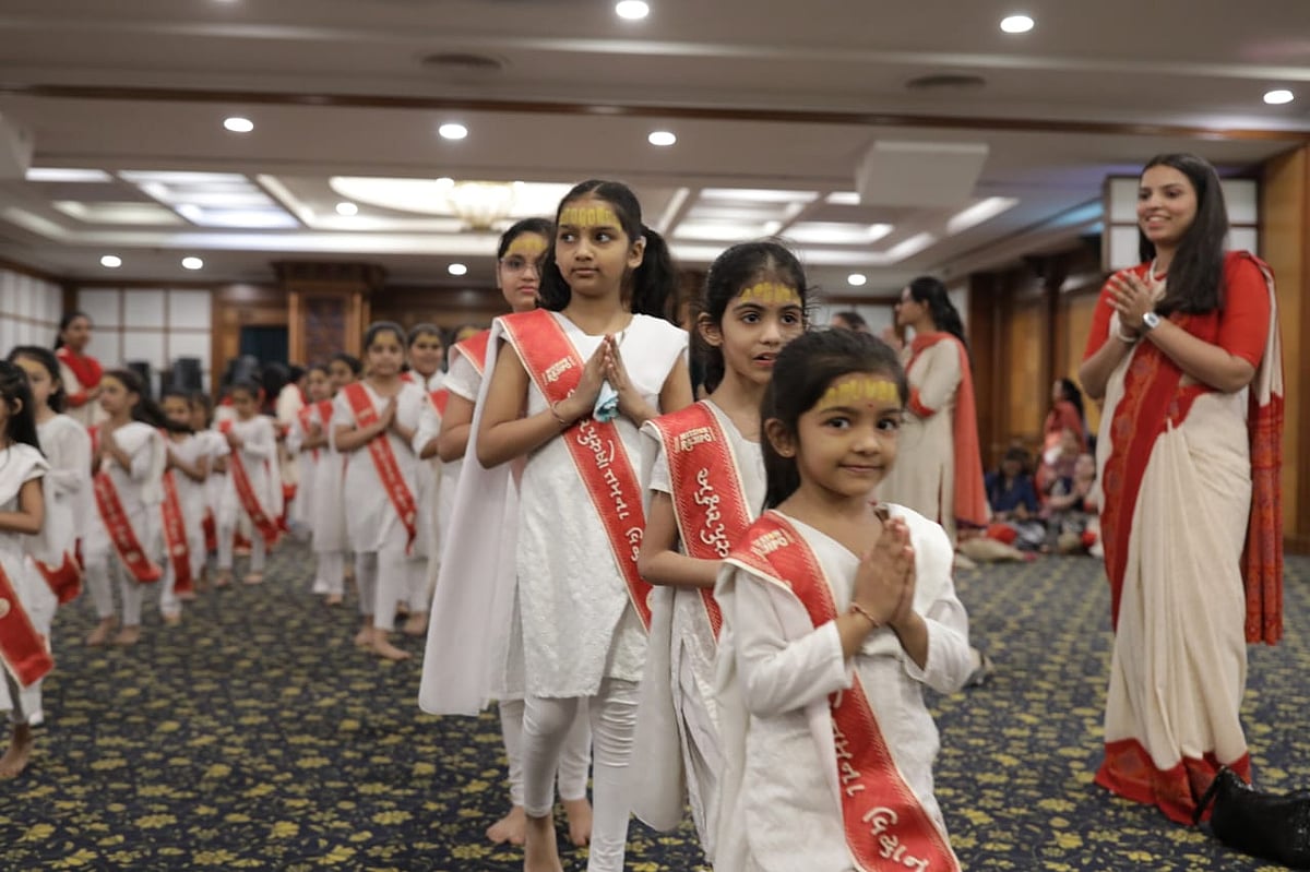 A major highlight of the event was the presence of 445 balikas from Mumbai, ranging from ages three to 13. These young girls have already achieved the milestone of reciting the 315 Sanskrit Shlokas of the Satsang Diksha Granth.