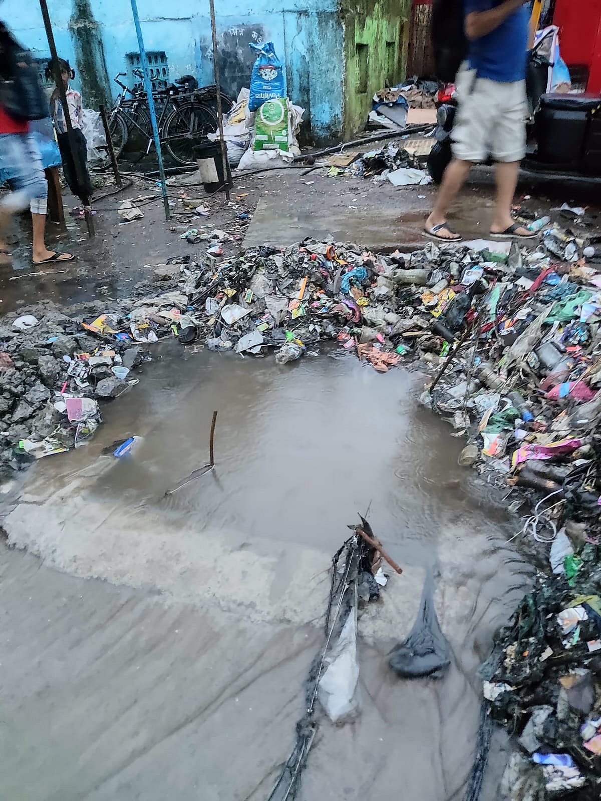 After the first heavy rainfall, the chamber was clogged with garbage and water flooded across the road, submerging the chamber. People walking along the stretch could not notice the chamber during heavy rainfall and fell into it.