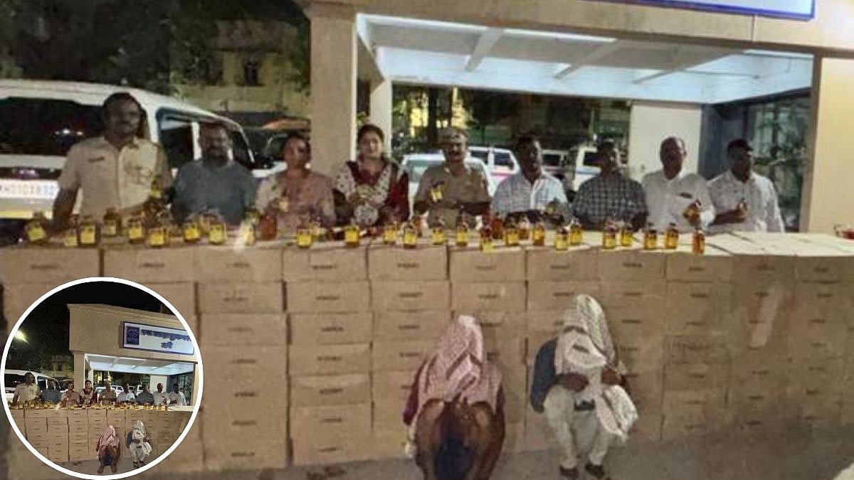 Thane, April 25: In a major crackdown against the interstate smuggling of illicit alcohol, the State Excise Department’s Flying Squad (Unit 1, Thane) intercepted a truck transporting a massive haul of foreign liquor disguised as a construction shipment.