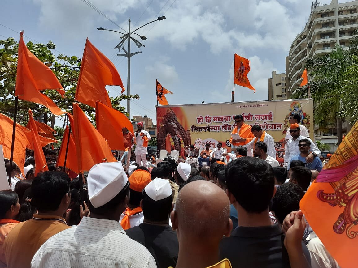 Narendra Patil, former MLA and Mathadi leader was also present in the morcha. He said that the majority of the population in Ulwe is Hindu and there is hardly anyone from Muslim community. “Muslims should be given a plot for a mosque where they have a majority,” said Patil.
