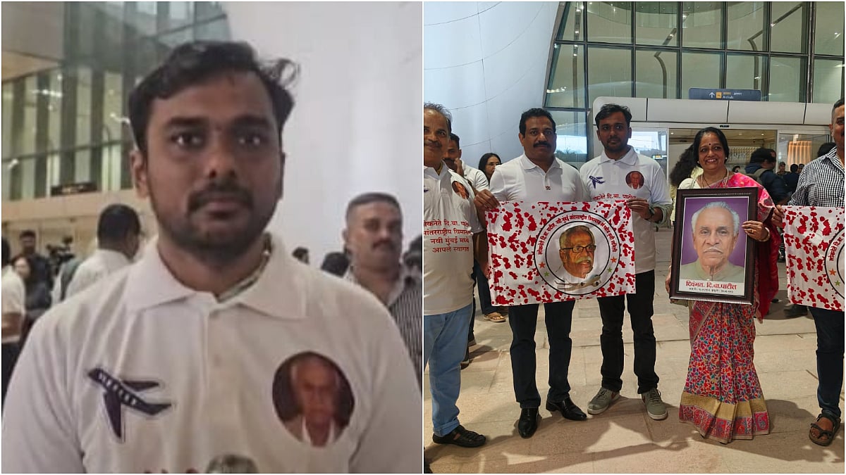 Patil boarded the flight wearing a T-shirt that read “Loknete D.B. Patil Antarrashtriya Vimantal, Navi Mumbai Madhye Aaple Swagat” (Welcome to Loknete D.B. Patil International Airport), and carried a hoarding bearing Patil’s photograph. The symbolic journey was aimed at reminding the government that the airport’s renaming, demanded by villagers from 27 surrounding villages, is yet to be fulfilled.