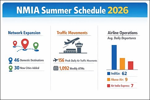 With IndiGo, Akasa Air and Air India Express set to operate additional flights from the airport during this period, flight operations are expected to scale up to 1,092 weekly air traffic movements, with an average of 156 movements per day. Average daily departures are projected to rise from 22 at launch to 78 by April 2026.