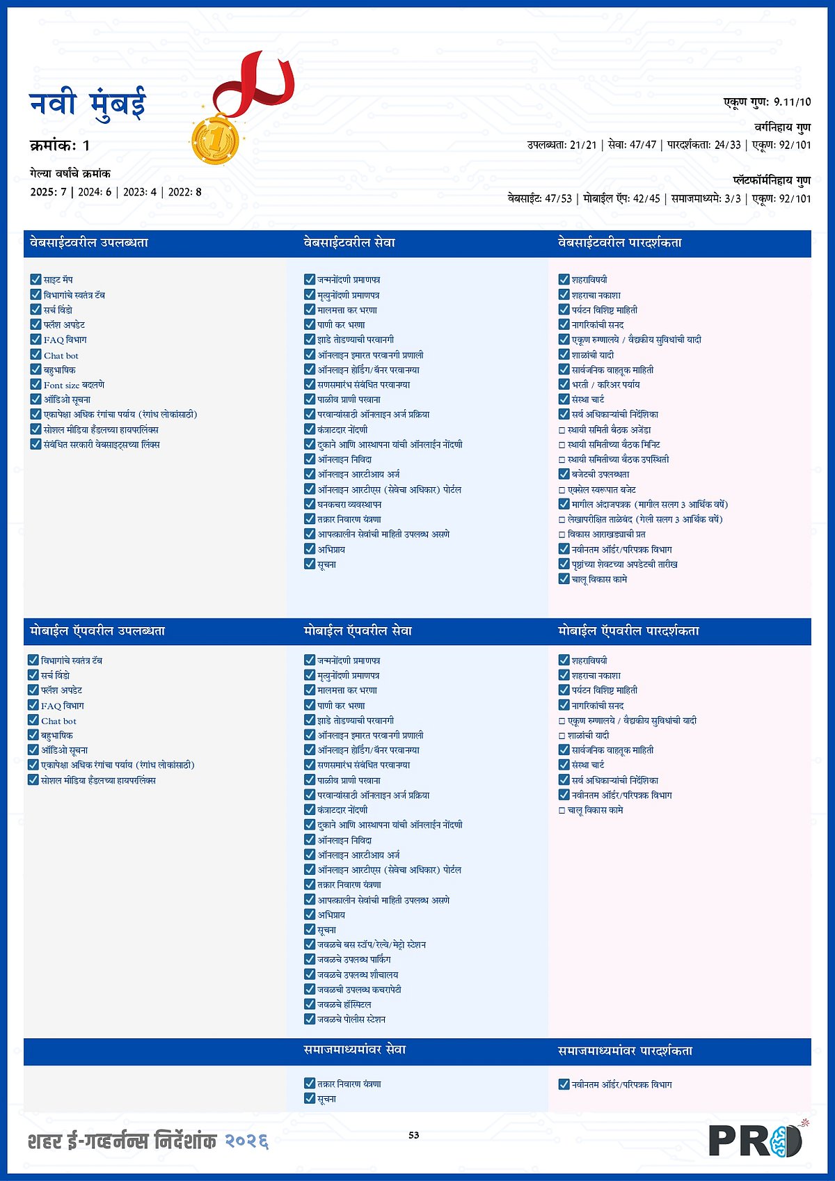 According to PRO President Tanmay Kanitkar, the index included a comparative analysis of e-governance initiatives undertaken by municipal corporations over the past five years. NMMC’s score of 9.11 marked a significant leap, placing it directly at the top of the state rankings.