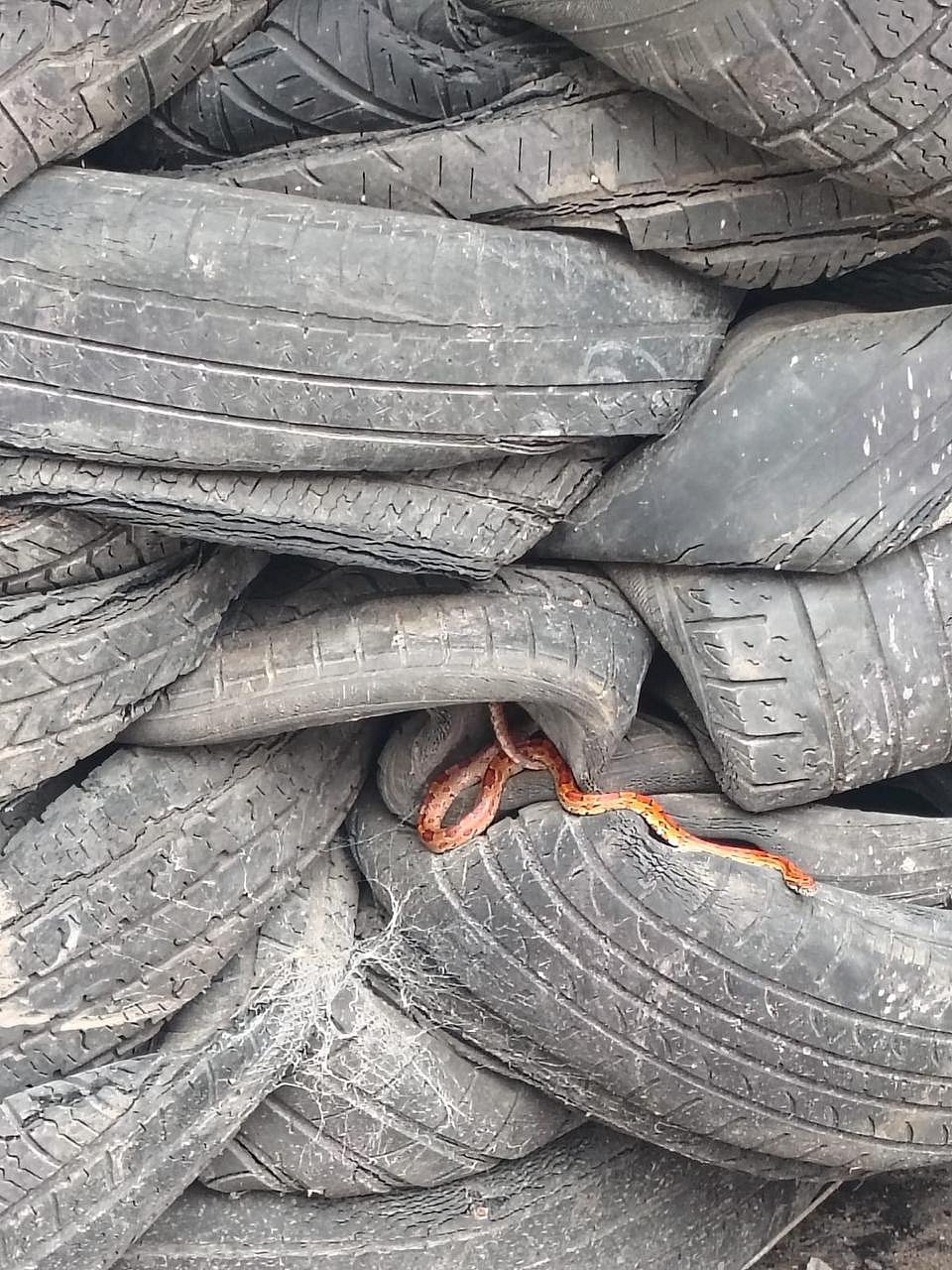 Custom House Agent Milind Patil and his team were startled when they noticed the orange, striped snake moving among the tyres. The management immediately contacted the Friends of Nature (FON) organization for rescue assistance.