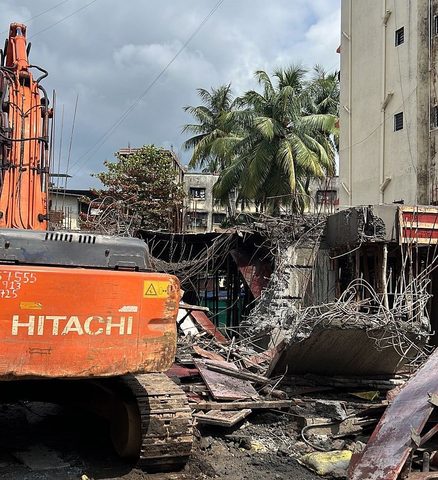 The unauthorized construction was removed by Aioli ward in the presence of police officials with the help of 13 laborers, 01 poclain, 05 hammers, and a gas cutter.