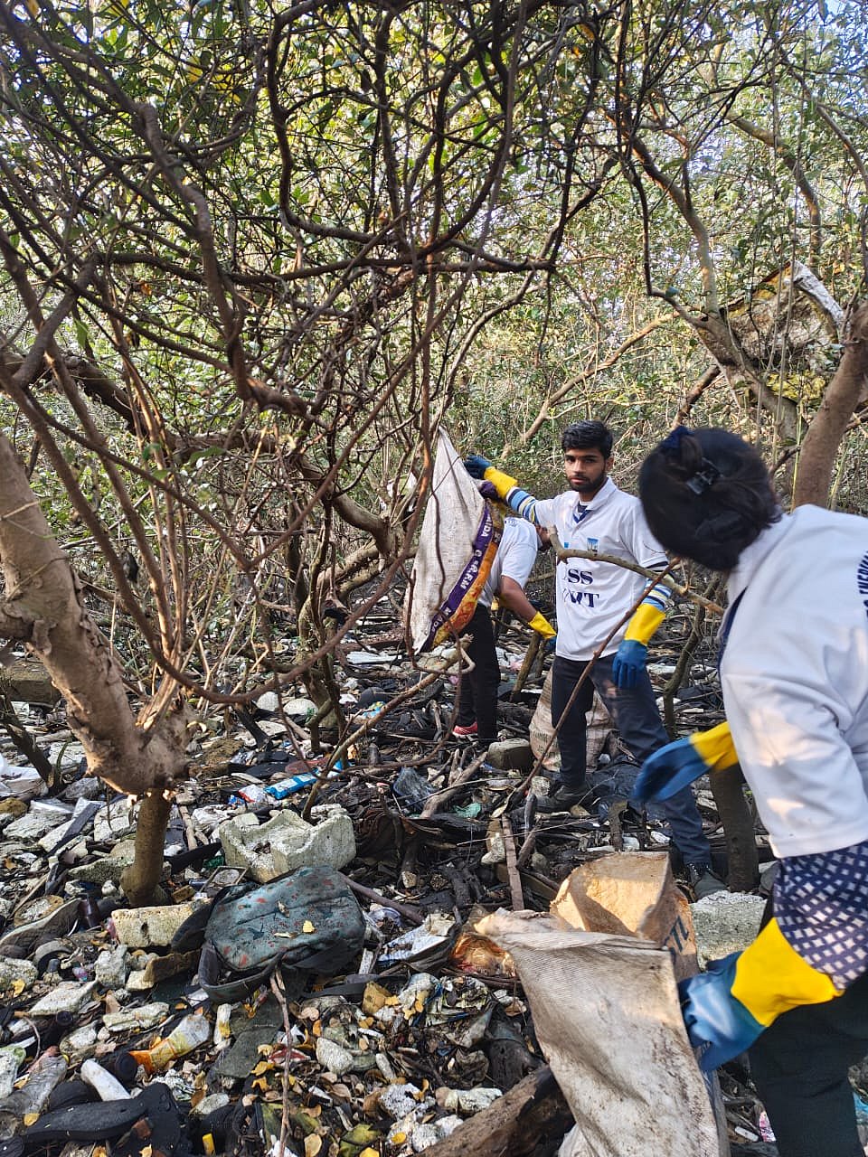 Volunteers from SIES College (NSS, BMS), Western College, KBP College Vashi, and Vivekanand Business School Chembur also joined the effort. Senior volunteer Rahul Raskar guided participants on the ecological role of mangroves, while local residents and Mangrove Soldiers contributed to the large-scale cleanup.