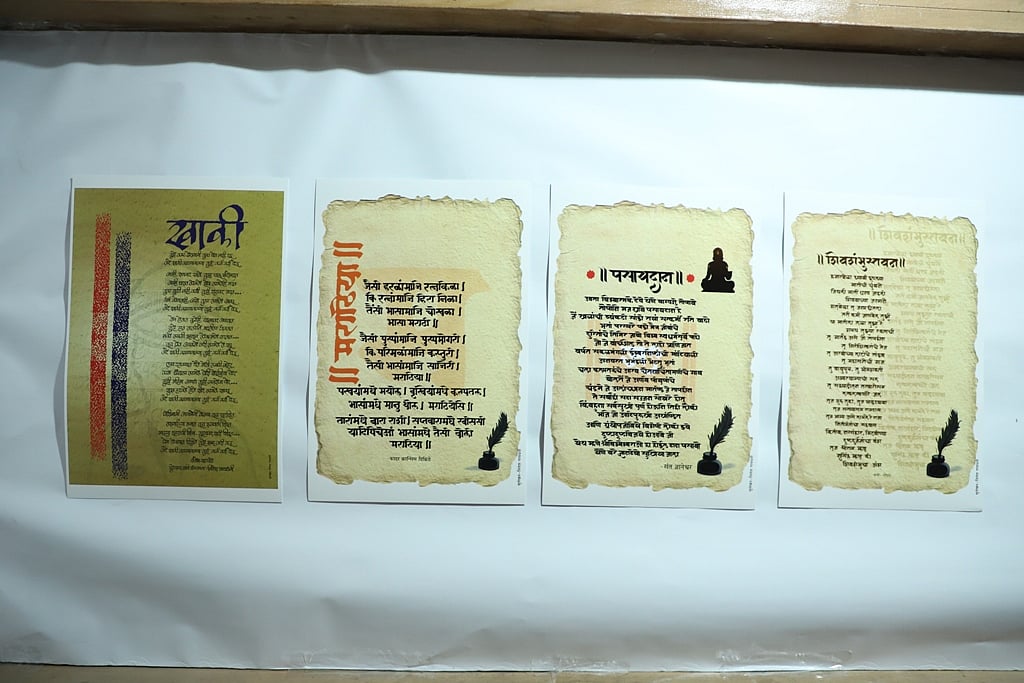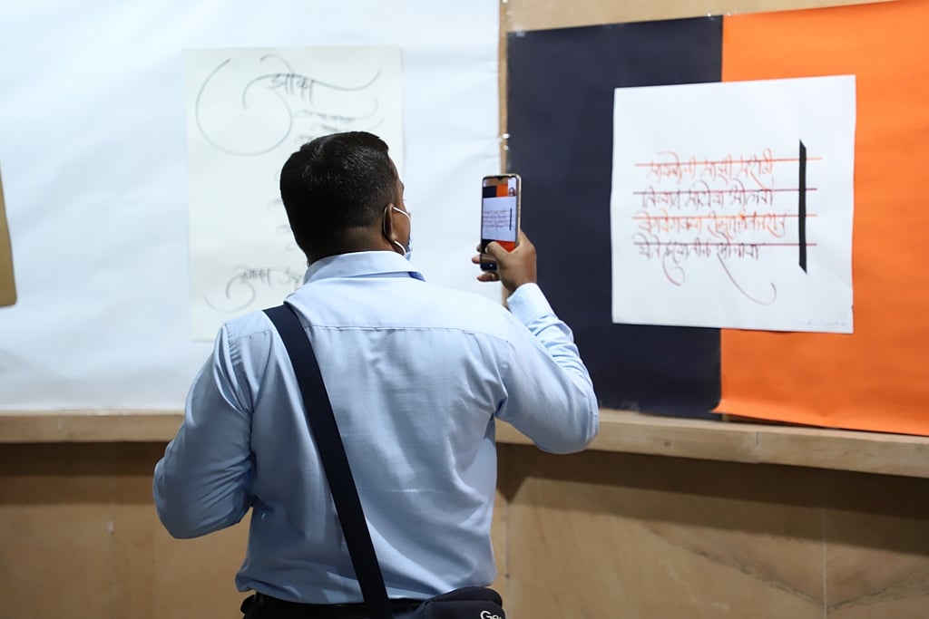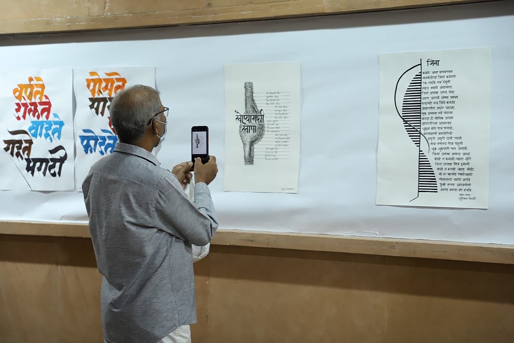 In the exhibition, well-known poems and thoughts in Marathi literature were expressed through beautiful handwriting by Achyut Palav and his students.