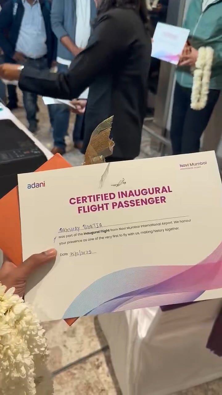 While the passengers of IndiGo’s 6E460 were already overwhelmed with the special feeling of being the first to land at the newly opened airport, the airport’s operator, Navi Mumbai International Airport Ltd. (NMIAL), enhanced their experience with a series of activities. The passengers were welcomed with a garland of flowers, followed by greetings from Gautam Adani. As the passengers reached to collect their luggage, the baggage belt brought along goodie boxes and ‘Inaugural Flight Passenger” certificates as a souvenir, honouring their presence as one of the very first to fly with the airport.