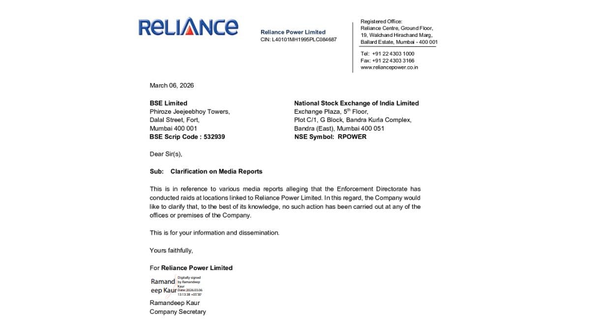 Reliance Power on Friday, March 6, denied reports of the Enforcement Directorate (ED) conducting searches at premises linked to companies associated in Mumbai and Hyderabad. The company, in an official statement, clarified that no raids were carried out at any of its premises, countering circulating speculation.