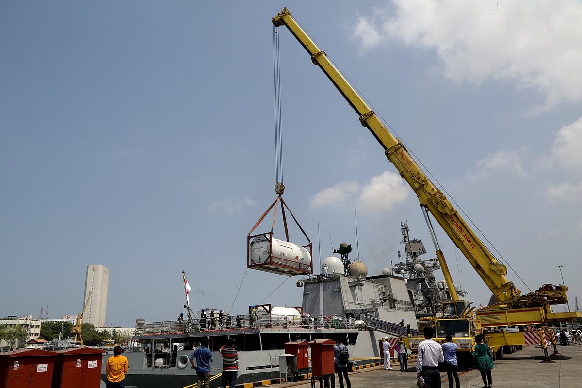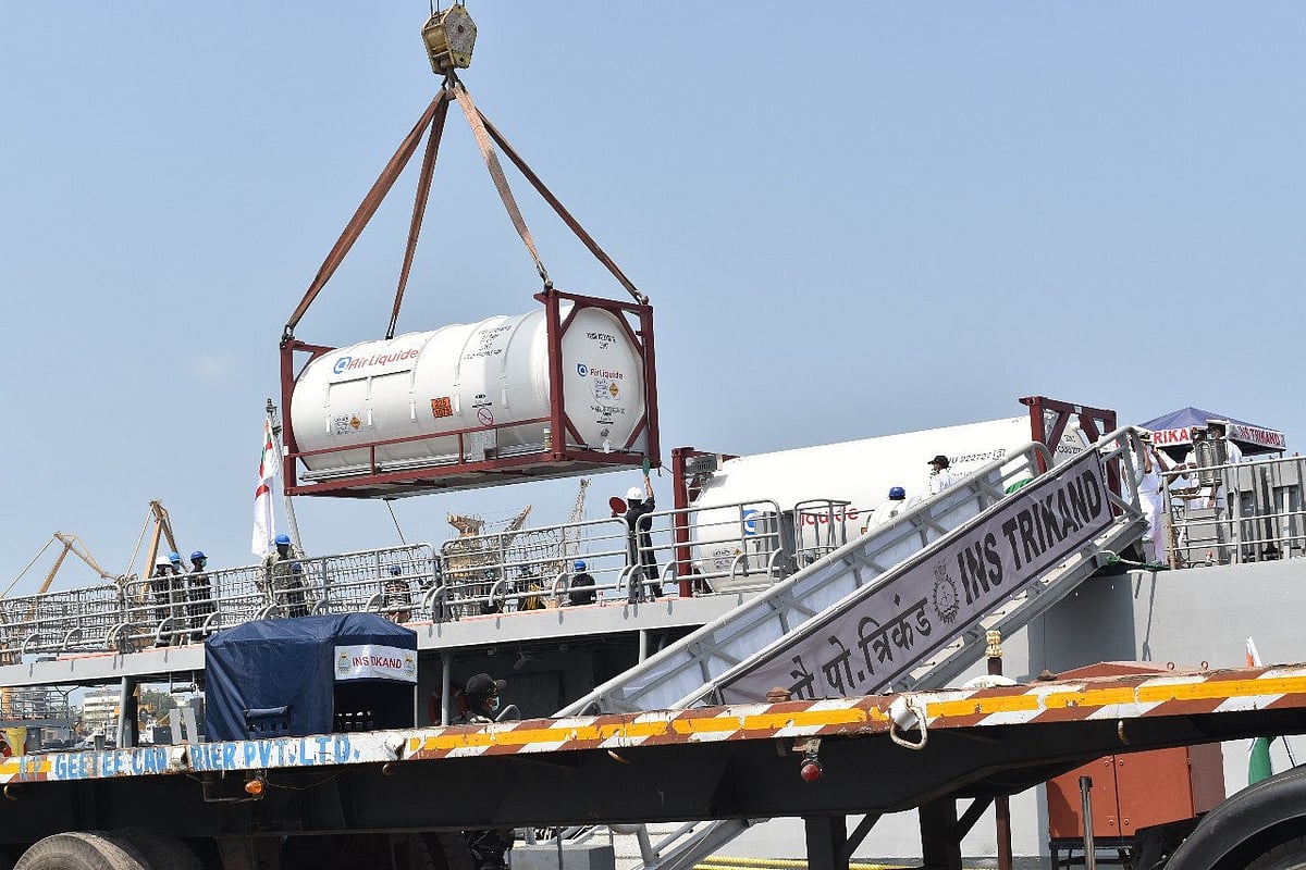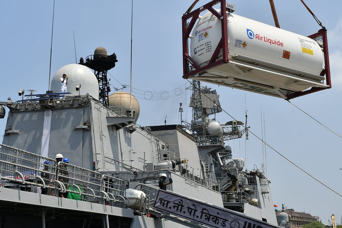As part of Operation Samudra Setu II, Indian Naval Ship Trikand was deployed to augment shipment of Liquid Medical Oxygen (LMO) cryogenic containers from Hamad Port, Qatar to Mumbai.