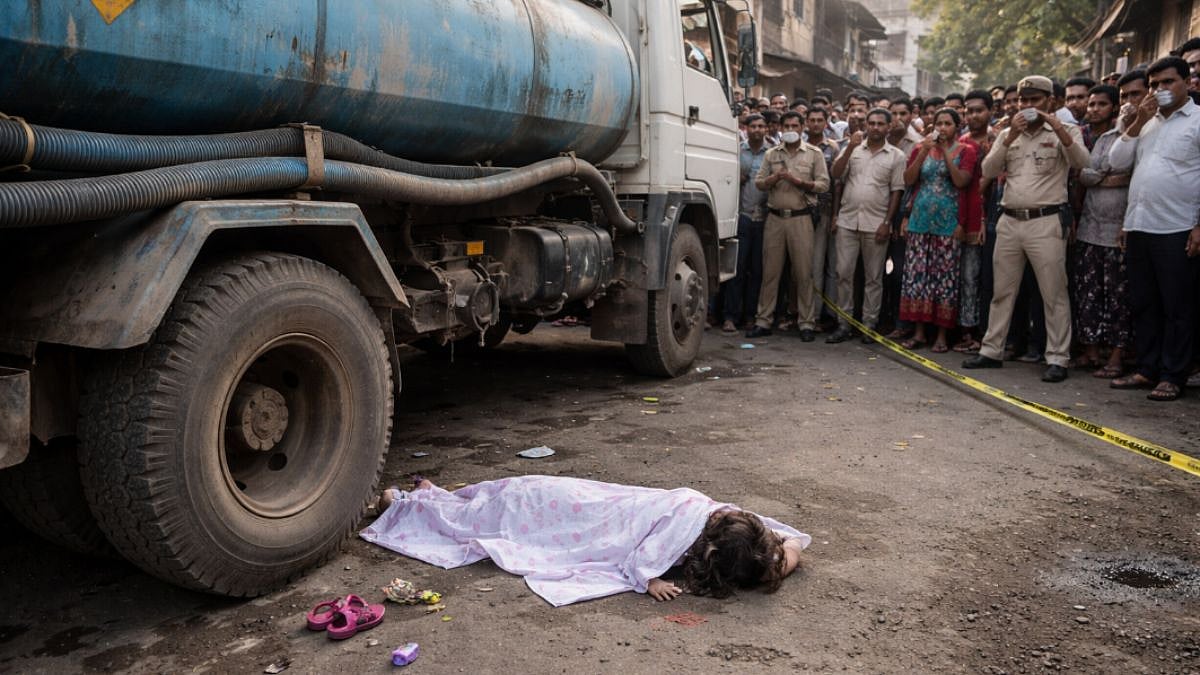 The mishap occurred on Saturday evening around 4:00 PM in the Durga Nagar area of Kherpada, Vasai. The victim, identified as Niksha Verma, was playing with her friends in front of her house when a speeding pickup tanker, used for water delivery, struck her.