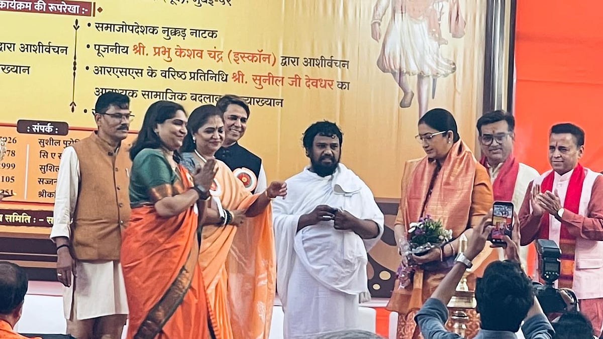 Addressing the gathering, Nileshchandra spoke about Monalisa, who had gained widespread attention during the Maha Kumbh last year after her images and videos circulated widely on social media.