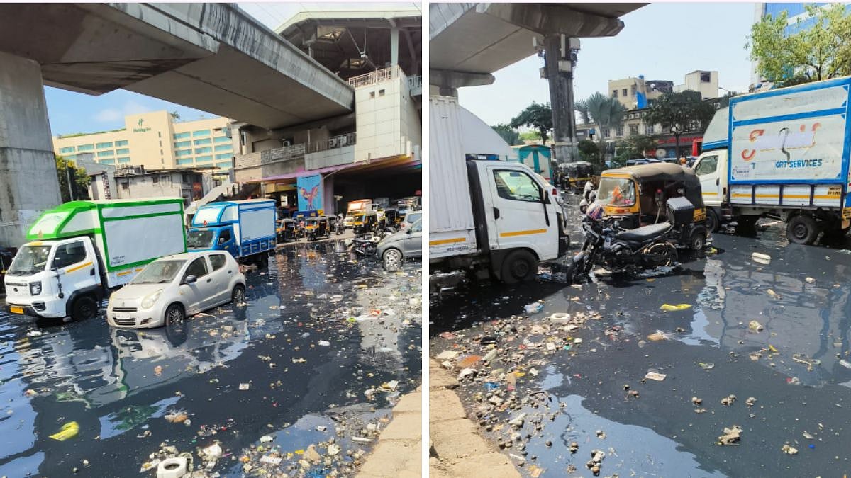 Despite the alarming condition, vehicles are seen passing through the filthy water without hesitation, while some remain parked in the same contaminated stretch. The proximity of the affected area to the Saki Naka Metro Station, a key transit point witnessing heavy daily footfall, further intensifies the seriousness of the issue, as pedestrians and commuters are inevitably exposed to the unsanitary surroundings.