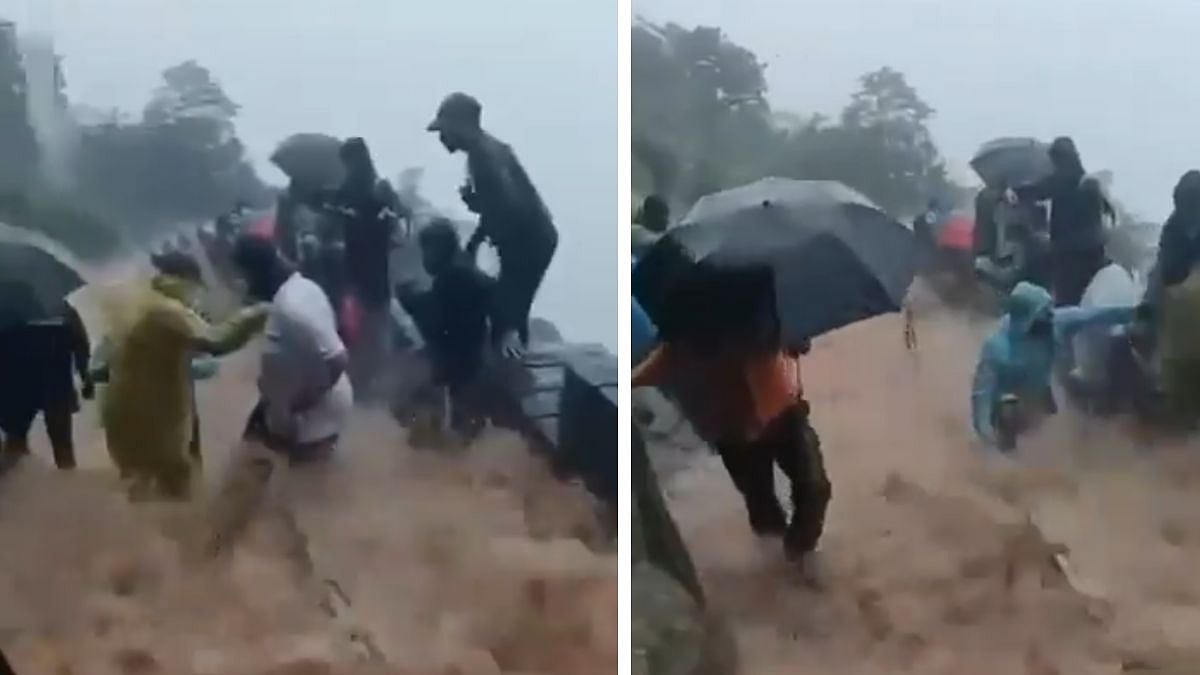 Over 30 tourists found themselves stranded, reaching out for help as gushing floodwaters on the steps of Raigad Fort in Maharashtra stunned them on Monday morning.