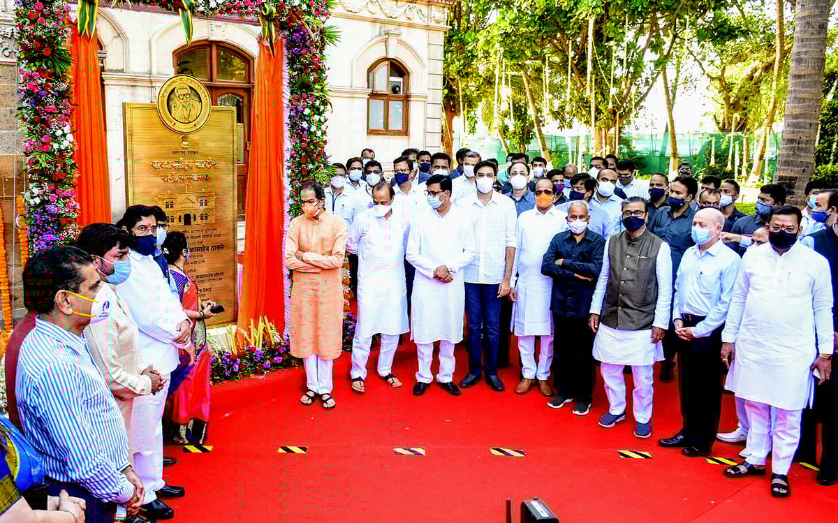 The function took place in the presence of CM Uddhav Thackeray, DCM Ajit Pawar, Revenue Minister Balasaheb Thorat, and Shiv Sena ministers Subhash Desai, Anil Parab and Eknath Shinde. Party MPs Sanjay Raut, Vinayak Raut, Gajanan Kirtikar, Anil Desai, Rahul Shewale, Mumbai Mayor Kishori Pednekar, BMC standing committee chairman Yashwant Jadhav, Shiv Sena house leader Vishakha Raut. However, not a single opposition leader was present as they were not invited and they were urged to participate online. The memorial is proposed to be set up at the cost of Rs 400 crore.