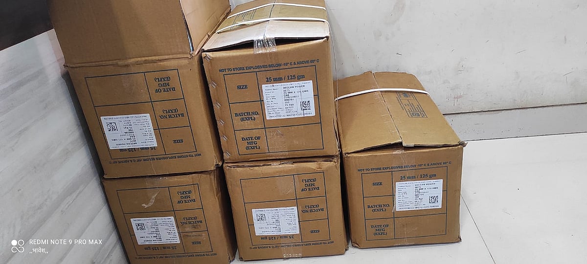 The police team intercepted the car to find 5 boxes of gelatin containing 200 pieces in one box i.e total 1,000 pieces in 5 boxes worth Rs 20,000. Around 1000 pieces of detonator worth Rs 25,000 and a car worth Rs 4 lakh. Estimating a total of Rs 4.45 lakhs.