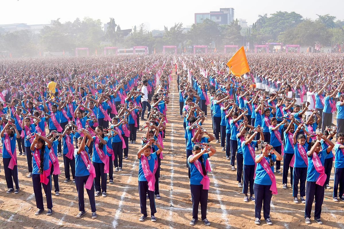 Hundreds of schoolgirls and women from across gathered at the venue and performed the traditional Lezim in unison. Their synchronized performance, lasting around five and a half minutes, helped them break the previous world record.