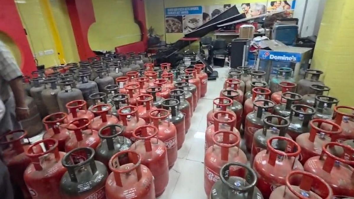 Upon inspecting the basement of the Domino’s Pizza store, officials uncovered a multi-brand stockpile of cylinders from HPCL, BPCL, IOC, and GO Gas.