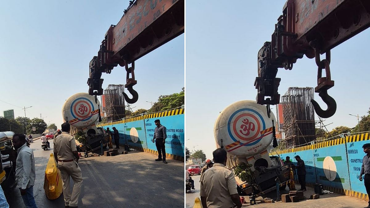 The incident occurred during the pre-dawn hours when a heavy cement bulker suffered a mechanical failure and partially overturned, obstructing a significant portion of the Mumbai-bound carriageway.