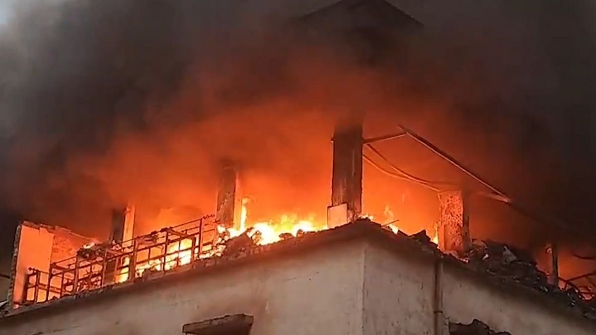 The blaze was reported around 6 am at the godown located at Rahnal village in Bhiwandi town. Thick plumes of smoke were seen rising from the warehouse.