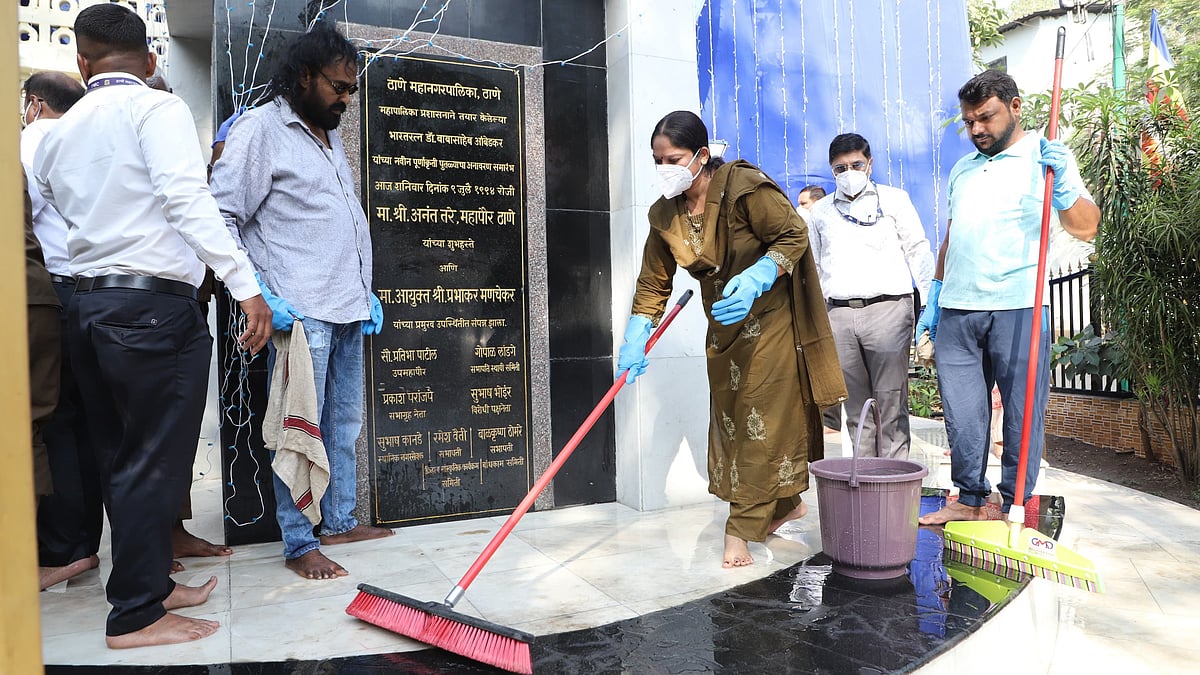 Recognizing that thousands of followers converge at the iconic statue of Dr. Ambedkar near Thane Station and Court Naka every April 14th, Mayor Pimpolkar had directed the administration to ensure the surrounding areas remain pristine. The drive commenced at 8:00 AM with a cleanliness pledge, followed by intensive cleaning operations at Siddharth Nagar (Kopri), Buddha Vihar (Anand Nagar), and Ramai Chowk.